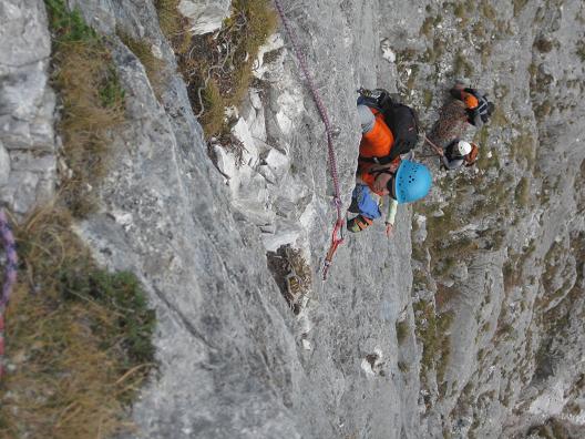 Adrenalinjunkies müssen daher damit rechnen, ihren Stoff nicht zu kriegen, und für die von vielen angestrebte Aufnahme in den erlesenen Kreis der Helden der Berge wird man wohl wildere Sachen machen müssen. Nichtsdestotrotz wollen die Routen geklettert sein, und völlig gedankenlos kurz vor einem Unwetter einsteigen sollte man auch nicht. Ein Mindestmaß an alpiner Erfahrung kann also nicht schaden für Routen wie z.B.