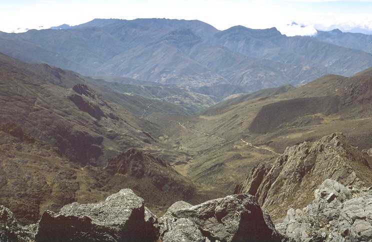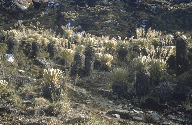 Hinweise: Klima: Merida liegt 1700 Meter hoch in einem von NE nach SW verlaufenden Tal. Tagsüber ist es in 4500 Meter Höhe warm genug, um Wandern und Sonnenbaden zu parallelisieren und nachts im Tal kühl genug, um erholsam zu schlafen. Durch die westliche Lage wird es außerdem eine Stunde später hell und dunkel als bei den Tafelbergen. Das stört morgens kaum, aber verlängert die Tage um eine Stunde. Nachmittags regnet es häufig im ab 16 Uhr im Bergschatten liegenden Tal, während auf den Bergen das schönste Wetter herrscht. Abends braucht man auch in der Stadt leichte Winterkleidung, Nachtfrost gibt es gelegentlich, Temperaturen unter 10 Grad täglich. In den Bergen gilt wie bei uns auch ein Temperaturabfall von ca. 2 Grad je 300 Metern. Unterkunft beim Wandern: Der Reiseführer gestattet, vorsichtig ausgdrückt, einen erheblichen Interpretationsspielraum. Hier sollte statt "Man übernachtet bei den Seilbahnstationen" besser "Man zeltet bei den Seilbahnstationen" stehen. Die in den alten Wanderkarten vorhandenen Hütten bei den Stationen "Loma Redonde" und "Pico Espejo" gibt es nicht mehr. Allerdings gibt es bei den Stationen "Aguada" und "Montana" kleine Dörfer, in denen sehr wahrscheinlich eine Posada sein wird. Los Nevados: Mittlerweile ist Strom, Gas und eine Lkw- taugliche Straße auch bis hierher vorgedrungen. Man lebt nicht mehr wie im Reiseführer beschrieben mit den Tageszeiten. Auch kann man mittlerweile warm duschen, d.h. man muss nicht mittags zurück sein. Verkehr: Der Kleinbus fährt alle 20 Minuten bis auf einen Pass in 4200 Meer Höhe, die letzen 4 km allerdings nur als Taxi zu Taxi- Preisen. Im Gegensatz zur Auskunft am Teminal fährt der Bus nachSan Christobal und das Por Puesto nach Los Appartaderos nicht durch die Stadt, es hält auch nicht zwischen Terminal und Tabay. Am besten fährt man mit dem Por Puesto nach Tabay und von dort weiter, das geht i.d.R. schneller als die Fahrt über das Terminal. Seilbahn: Diese